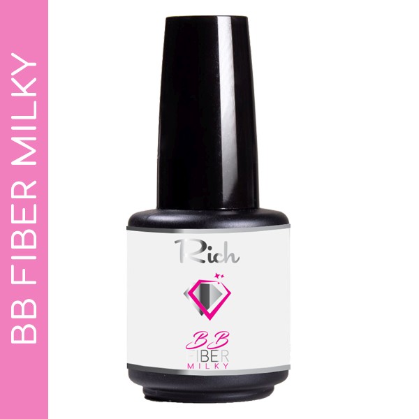 BB ( BUILD&BRUSH ) fiber Milky – gel nove generacije! Gradivni gel u bočici obogaćen nitima fiberglass trakica koje su nakon polimerizacije nevidljive. Guste je teksture i ne sliva se u zanoktice što omogućuje precizan rad i minimalnu obradu. Gel je namenjen kako profesionalcima tako i početnicima! Pogodan je za sve vrste izrade, čak i za najkrhkije nokte.